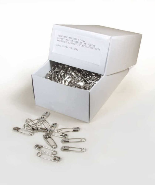 Stabile Sicherheitsnadeln (38 mm) aus vernickeltem Stahl mit grosser Spirale für extra Halt und leichtes Öffnen. Ideal zur Kennzeichnung oder Befestigung von Etiketten und Textilien in Wäschereien, Reinigungen und Textilbetrieben. Korrosionsbeständig und langlebig.